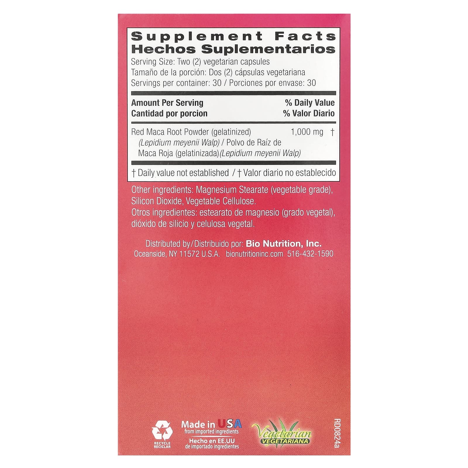 Bio Nutrition, Gelatinized Red Maca For Women, 60 Vegetarian Capsules (500 mg per Capsule)