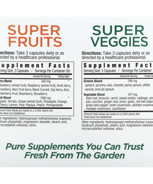 Super Fruits: Take 3 capsules daily or as directed by a healthcare professional.Super Veggies: Take 3 capsules daily or as directed by a healthcare professional.