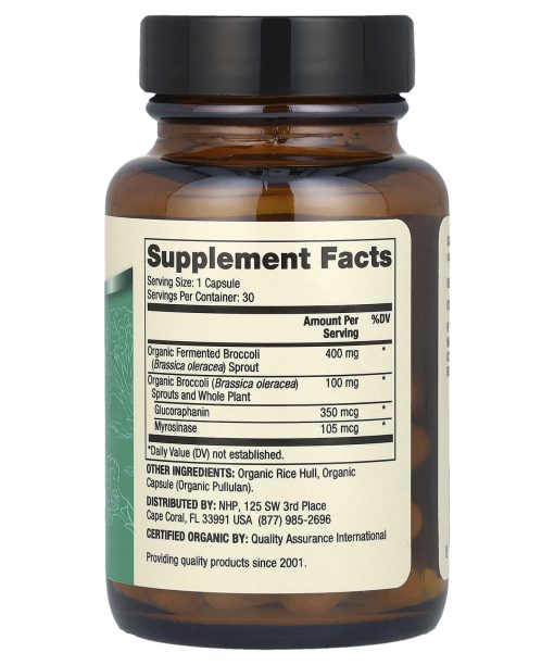 Dietary SupplementUSDA Organic Certified Organic by: Quality Assurance International Providing Quality Products Since 2001Rich in vitamins, minerals and powerful phytochemicals, broccoli and broccoli sprouts are two of the healthiest foods you can eat. They contain two compounds – glucoraphanin and myrosinase – that combine to produce a unique compound called sulforaphane, a super-antioxidant that helps protect your cells, tissues and DNA from oxidative damage. Unfortunately, when you heat broccoli, it destroys the myrosinase. Our Organic Fermented Broccoli Sprouts is gently dried and powdered to preserve the myrosinase, glucoraphanin and all its other nutrients so you can enjoy the benefits of this powerful team.