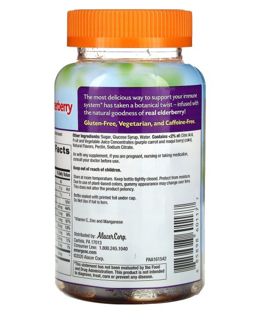 Daily Immune Support and Botanicals Gummies Natural Elderberry High Potency Vitamin C Antioxidants^and B Vitamins Natural Flavor and Other Natural Flavors Dietary Supplement Gluten-Free, Vegetarian, and Caffeine-Free The most delicious way to support your immune system has taken a botanical twist – infused with the natural goodness of real elderberry! ^Vitamin C, Zinc and Manganese
