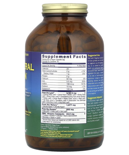 GrassesAlgaeLand VegetablesSea VegetablesEnzymesPerfect Combination to Earth Broth®Nourishing – Foundational – Hard-CoreBroad Spectrum Green Superfood ComplexDietary SupplementKosher ParevecGMP Quality Products – Current Good Manufacturing PracticesVeganGluten FreeLab VerifiedEcofresh™ PackagingNutrition the Way Nature Intended™Vitamineral Green® is an extremely potent, hard-core, green superfood complex, combining the most nutrient-dense superfoods on the planet in convenient capsules (free of flow agents). Featuring chlorophyll rich grasses and grass juices, microalgae, and sea vegetables abundant in iodine and trace minerals. Our unique formula offers a diverse blend of alkalinizing plant foods not commonly found in our modern diet. By including bio-diverse superfoods such as nettles, horsetail, and barley grass juice, as well as non-green powerhouse superfoods such as ginger root and amla berry, we’ve created a broad-spectrum, bio- nutritive superfood complex that is truly one of a kind. Vitamineral Green is real nutrition, free of synthetic/isolated nutrients, or added sweeteners. Green Focused: Not diluted with grains, seeds/ chia/flax, fibers, binders, or fillers. HealthForce SuperFoods® is an independently owned and operated whole food botanical company. We offer a diverse and truly effective product line inspired by the incredible symbiotic power of plants. Our mission is fueled by a passion for purity with a strong commitment to compassion and integrity. We are proud to offer clean, ethically produced products designed to help people realize their full potential.
