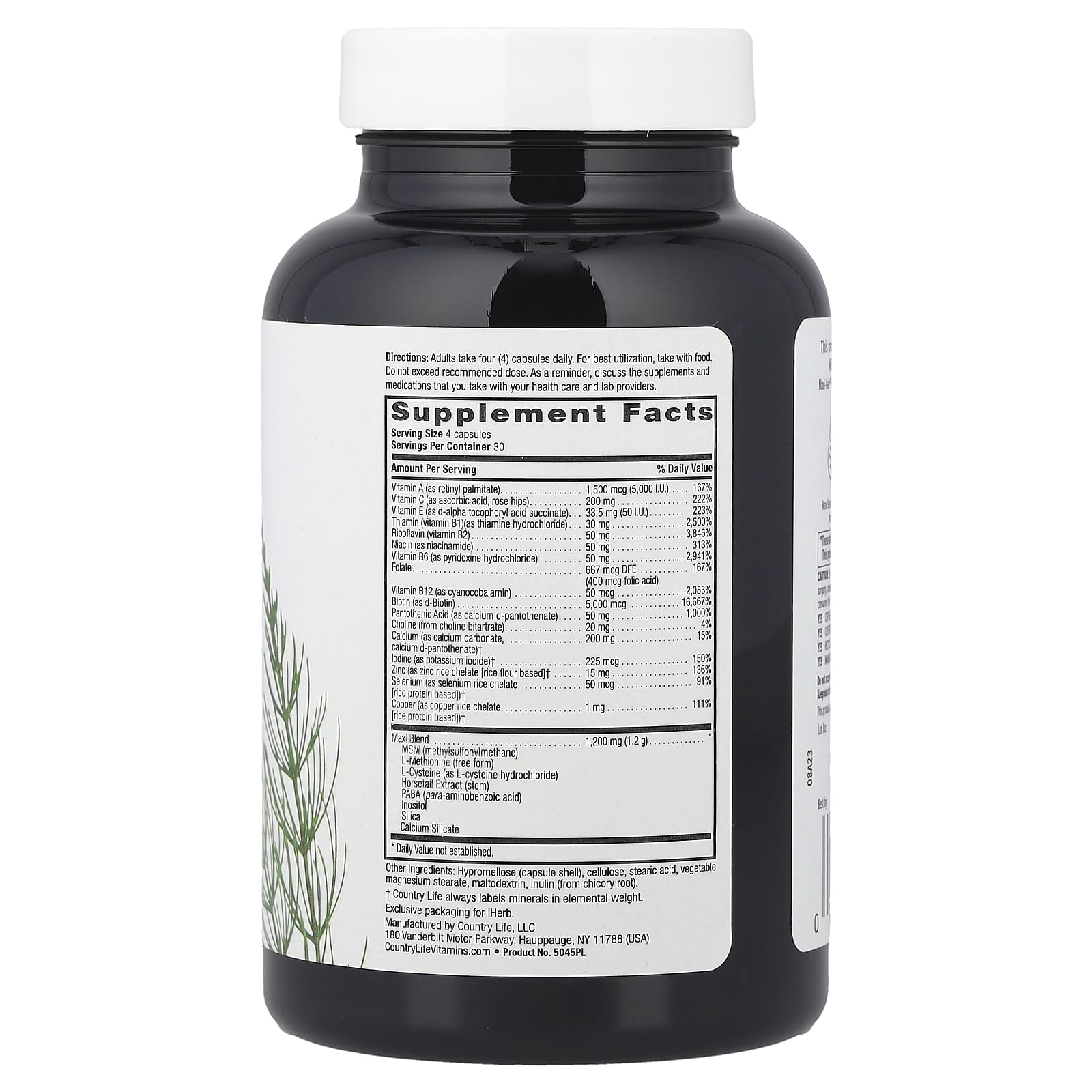 5,000 mcg Biotin per ServingCertified Gluten-FreeDietary SupplementMaxi Blend of Botanicals & Amino AcidsPowered by B VitaminsVegetarian CapsuleIgen™ Non-GMO VerifiedCertified B Corporation— Our Pledge of Integrity —AuthenticityCleanlinessFreshnessConsistencyAccuracyThis product, which is formulated with B vitamins, biotin and MSM, brings life back to your hair, skin and nails.Maxi-Hair® Plus (in vegetarian capsules) contains 5 mg (5,000 mcg) of biotin. (per serving)YESCertified Gluten-Free by GFCO.orgNOWheat or MilkYESCertified Vegetarian by the AVANOPreservativesYESRecyclable PackagingNOArtificial Colors, Flavors or SweetenersYESManufacturing Supports Wind Power