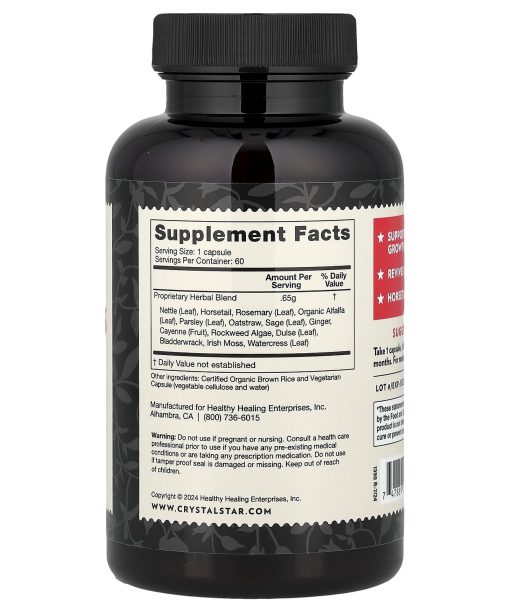 Estd. 1978Luster and Shine14 Whole HerbsNon-GMO ProductVegetarian Friendly3rd Party TestedDietary SupplementSupports Healthy GrowthRevives Hair & NailsHorsetail & AlfalfaU.S. F.D.A. cGMP-Audited FacilityHelp Strengthen, Grow and Beautify Hair & Nails with Horsetail, Alfalfa, & Nettle Leaf.