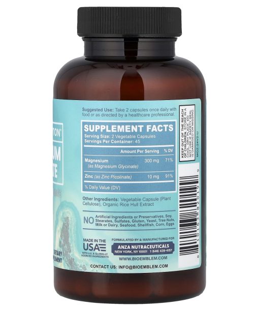 BioEmblem, Magnesium Glycinate with Zinc Picolinate, 90 Veggie Caps