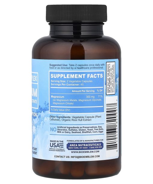 Non GMOMalate + Glycinate + CitrateHigh AbsorptionDietary SupplementLab TestedcGMP Certified FacilityGluten FreeVeganHelps Support:Bone HealthMuscle HealthNerve FunctionEnergy ProductionCognitive FunctionHeart HealthThe BioEmblem MantraNature’s best ingredients in mindfully crafted formulas for a more radiant life.