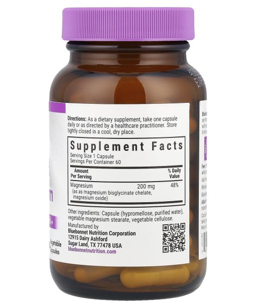 Made with Non-GMO IngredientsRelaxation, Immune & Heart Health Albion MineralsVeganGluten FreeKosher ParveDietary SupplementBluebonnet’s Buffered Chelated Magnesium Vegetable Capsules are formulated with chelated magnesium bisglycinate buffered with magnesium oxide to increase the pH (alkalinity), making it more gentle on the digestive tract.May support: Rest & RelaxationImmune HealthHeart Health