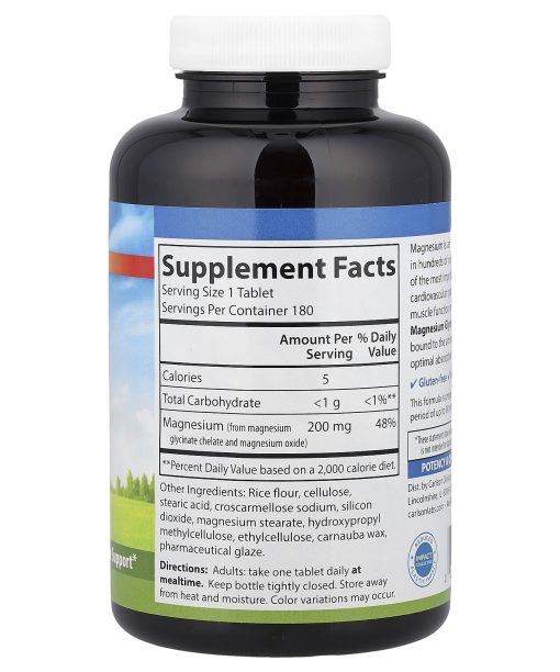 Carlson, Chelated Magnesium Glycinate, 200 mg, 180 Tablets