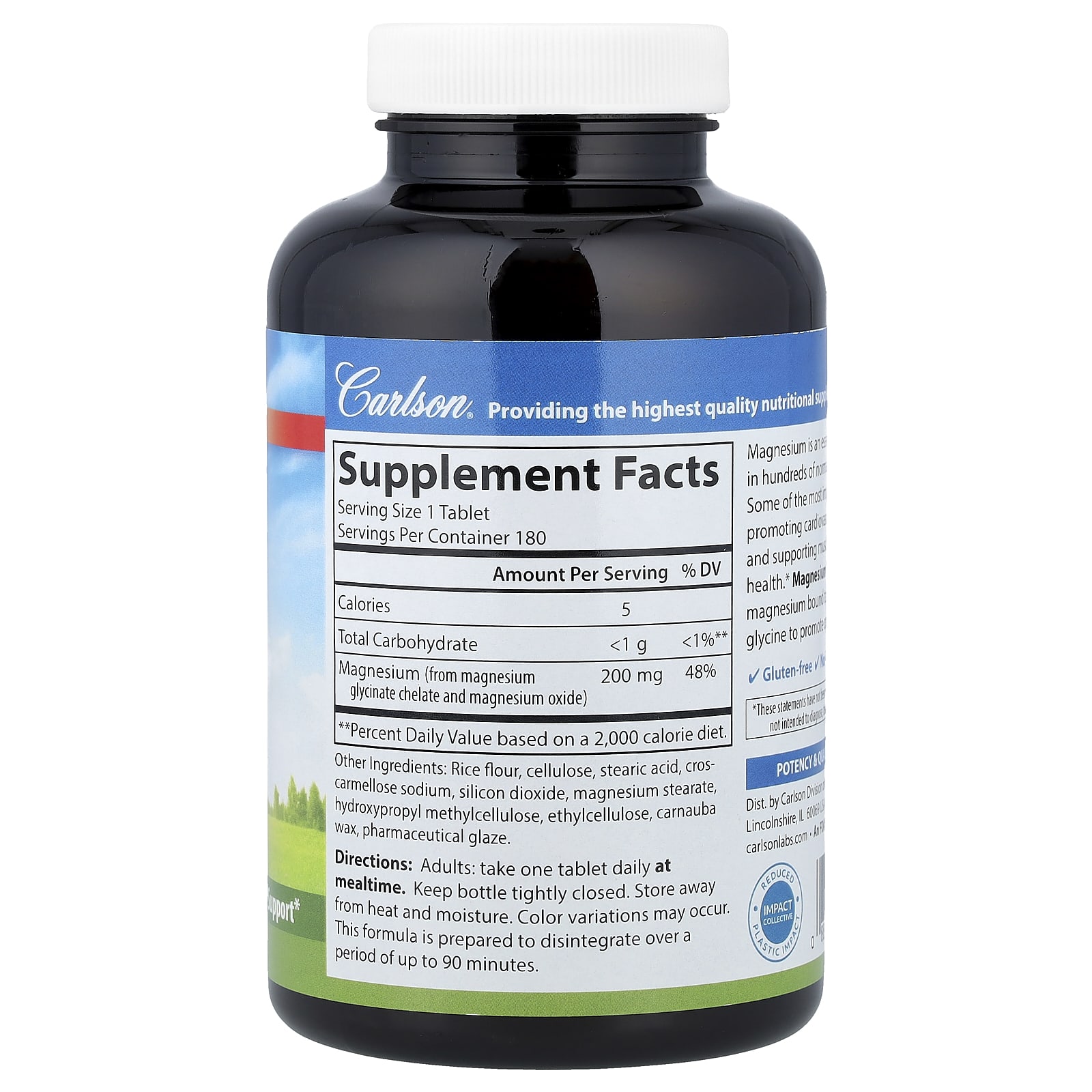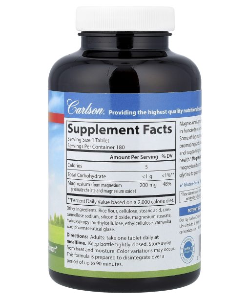 Carlson, Magnesium Glycinate, 200 mg, 180 Tablets