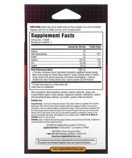 Do not use if safety seal is broken. This product contains an ingredient that may affect blood sugar. Check with your doctor before using this product and engaging in activity, if you are using medication or have any medical conditions, including heart disease or high blood pressure. Individuals with low blood pressure should not take this product. Do not exceed 90 days of continuous use of this product without a two (2) week break. Do not use if you may become pregnant, are pregnant or nursing. Do not exceed recommended daily intake. Not intended for use by persons under 18. Keep out of reach of children. Store in a cool, dry place. This product contains a chemical known to the State of California to cause birth defects and other reproductive harm. Prop 65.