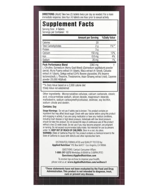 Supports Blood Flow to Vital OrgansPromotes Healthy Sexual Performance Maximizes Your Potential!Works Tonight!Appliednutrition®With Nitric-Oxide BoosterQuick-Rush Sexual Energy Activator for MenStimulate Nitric Oxide Product to Support Blood Flow & Maximum Physical ResponseDietary SupplementSupport Blood-Flow: Enhance Performance!Nitric Oxide is a naturally occurring compound in the body that plays a key role in cardiovascular and sexual health. Nitric Oxide is produced in the inner lining of blood vessels and helps to relax and dilate vessels, allowing more blood flow throughout the body. When sufficient Nitric Oxide is present in healthy males, erections occur during the normal course of intimacy.This unique formula features L-Citrulline: an amino acid that is readily converted to L-Arginine within the body: L-Arginine can be converted to Nitric Oxide within the body. L-Citrulline supports blood flow to vital organs and enhances physical response during sexual activity.Maximize Your Potential!Magnum Blood-Flow Sexual Peak Performance® is a revolutionary advancement in sexual performance for men. This innovative product is specially formulated to support blood flow and maximum physical response during sexual activity.Primary features include:Nitric-Oxide BoosterSexual Energy ActivatorsMale Performance EnhancersThis formula can be taken daily for ongoing maintenance of sexual health or as needed for more immediate sexual enhancement.AppliednutritionApplied Nutrition® is committed to developing science-based products that exceed the highest standards for quality and purity. As a leader in innovation, we continuously strive to bring forward new ideas and groundbreaking formulas that enhance health and well-being.