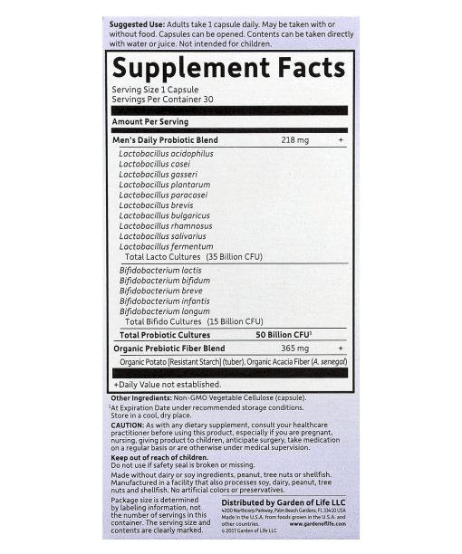 Garden of Life, Dr. Formulated Probiotics, Once Daily Men’s, 50 Billion, 30 Vegetarian Capsules