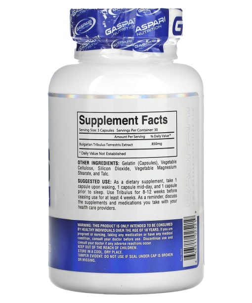 650 mg At 90% StandardizationUltra High Potency Bulgarian Tribulus ExtractDietary SupplementWith Meals | Pre | During | Post | Between MealsThe Active Steroidal Saponins found within Tribulus Terrestris have been shown to:Increase TestosteroneEnhance Luteinizing Hormone ProductionAugment Sex DriveBoost Muscle Power & StrengthGaspari Nutrition’s® Tribulus is the premier option for those looking for the most powerful Tribulus Terrestris extract available on the market. As with all Gaspari products, Tribulus is made using only the highest quality active ingredients, providing users with unmatched levels of the powerful steroidal saponins naturally found in Tribulus Terrestris. Daily use of this incredible herb may help augment your sex drive, increase lean muscle mass, and enhance strength and power!