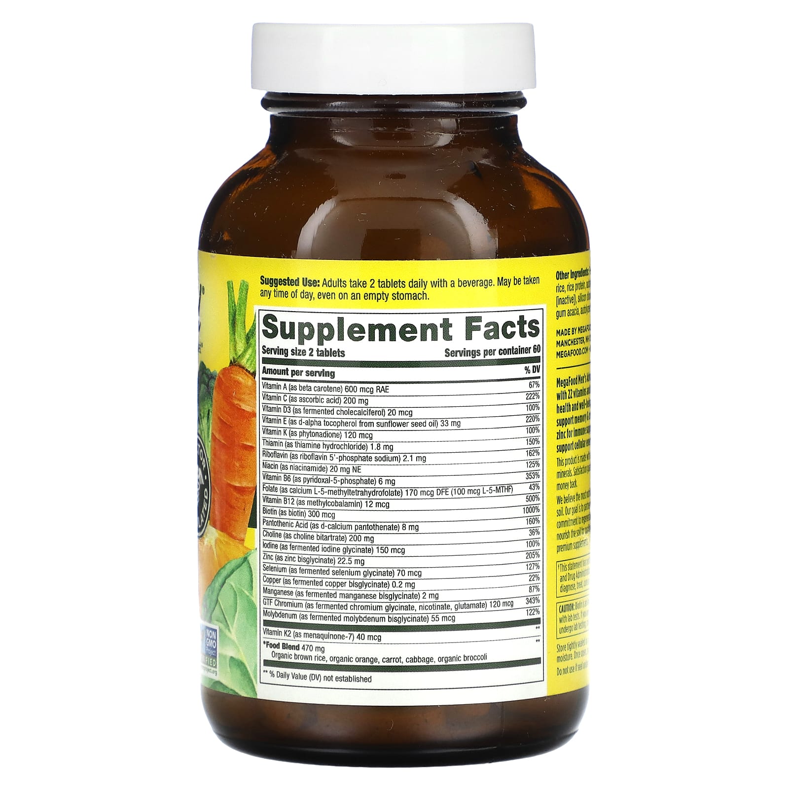 Fresh Farm To TabletDoctor FormulatedBrain HealthImmune Support Energy MetabolismWith 22 Nutrients Including Choline Plus Real Food Dietary Supplement Non GMO Project Verified Tested 125+ Pesticides & HerbicidesMade Without 9 Food Allergens* Glyphosate Residue FreeGluten Free VegetarianCertified B CorporationKosherMegaFood Men’s Advanced Multivitamin is crafted with 22 vitamins and minerals to support optimal health and well-being, including choline to Support memory & cognitive function, vitamin C & zinc for immune support, and B vitamins to support cellular energy metabolism.This product is made with food-paired vitamins and fermented minerals.We believe the most nutritious food comes from healthy soil. Our goal is to partner with farmers who share our commitment to regenerative agriculture, working to nourish the soil for quality ingredients that make for premium supplements.*Made without milk, eggs, peanuts, tree nuts, soy, wheat, fish, shellfish and sesame.