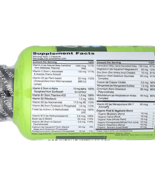 From Nature With Love®Dietary SupplementFormulated to Support Energy, Immune Health & Muscle FunctionNo GMOsNo SoyNo GlutenVegan FriendlyNo Coloring, Preservatives or FlavoringSuitable for Vegans and VegetariansGMP – Good Manufacturing Practice – Consistent QualityVitamin Angels®All-in-One: Packed with 23 essential vitamins and minerals to support men’s health, plus organic fruits and vegetables for whole food nutrition and antioxidant support, all in just one daily multivitamin for men.Plant-Based: Featuring premium plant-based vitamins and minerals such as Vitamin D3 from wild-harvested lichen, Vitamin E from sunflower, Calcium and Magnesium from marine algae, and Iodine from kelp.Bioactive: Includes activated B vitamins like B12 from methylcobalamin, B6 from P-5-P, and MTHFR-friendly Methyl Folate (not folic acid), plus chelated minerals like Zinc and Selenium, for better absorption and bioavailability.Healthy Benefits: Boost your natural energy and vitality and support your heart, brain, eye, and immune health with vitamins, minerals and organic whole foods to round out your diet and help keep your body functioning at its best.