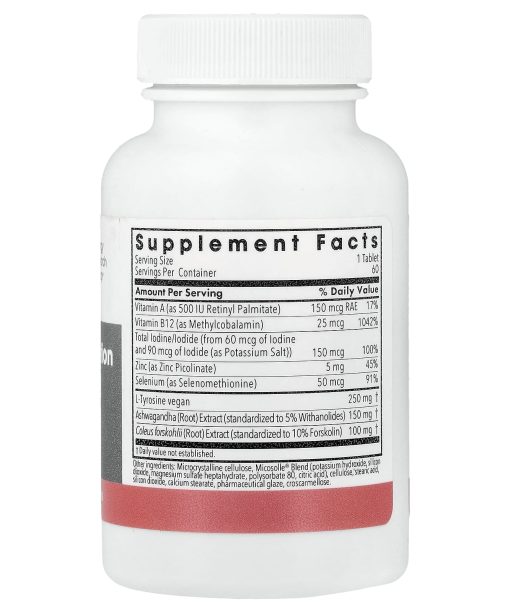 Dietary Supplement HypoallergenicThyroid Nutrition is a comprehensive formula designed to support optimal thyroid function and overall well-being. It combines key nutrients including Iodoral® iodine, selenium, zinc, tyrosine, and vitamins A and B12 with botanical extracts of ashwagandha and Coleus forskohlii to support healthy thyroid hormone synthesis, stress resilience, and metabolic balance.