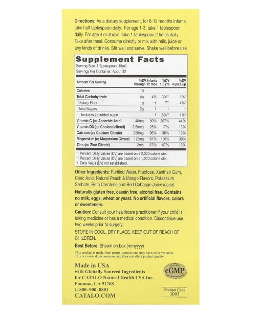 CATALO, Children’s Liquid Calcium with Magnesium & Zinc, Peach and Mango, 16 fl oz (474 ml)