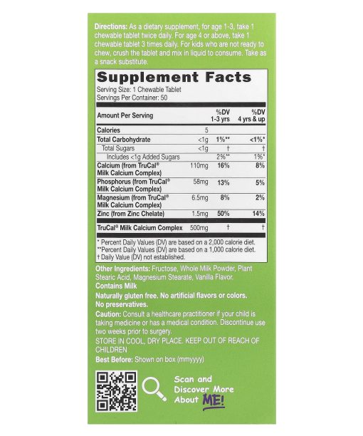 CATALO, Children’s Milk Calcium Formula, Zinc, 50 Chewable Tablets