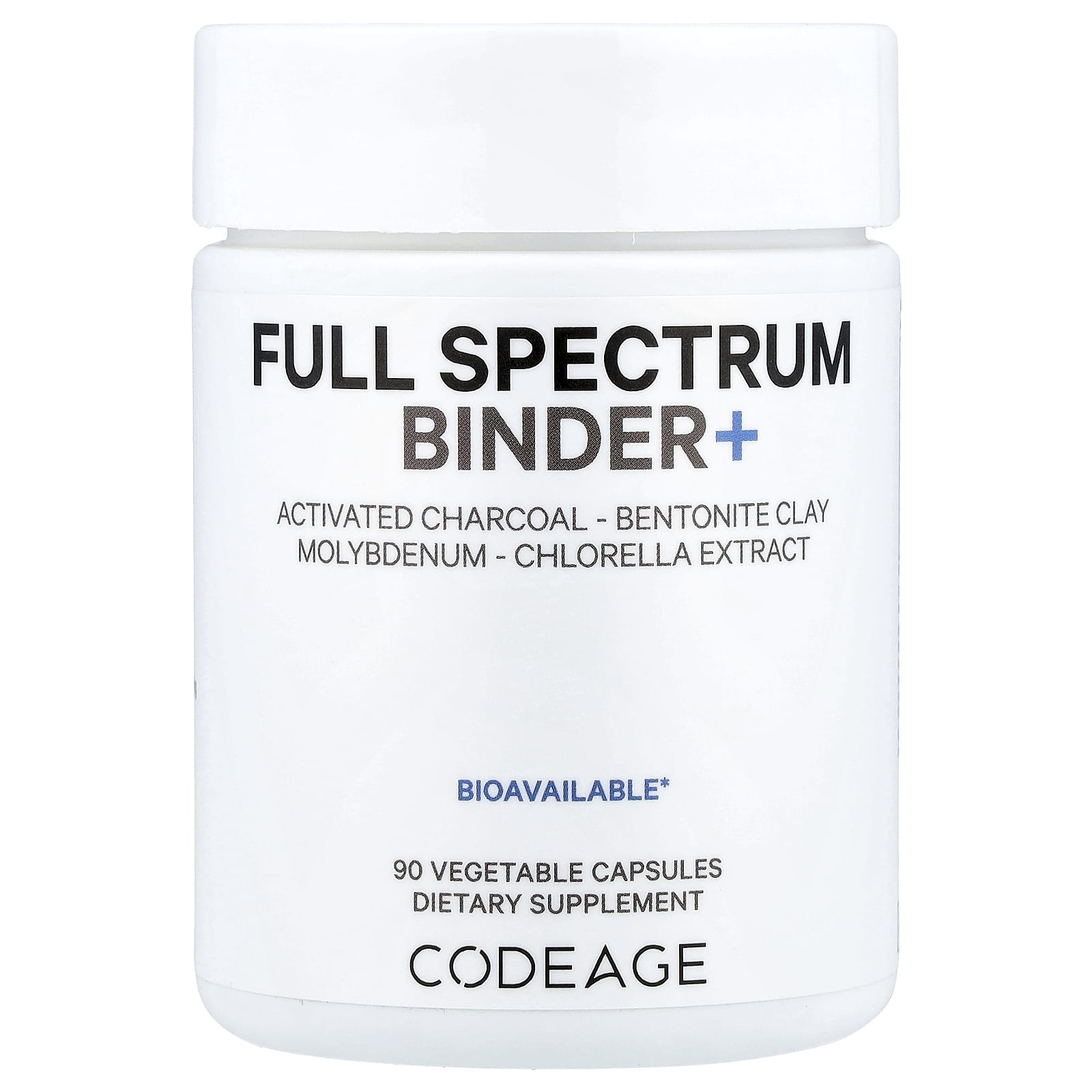 Activated Charcoal – Bentonite ClayMolybdenum – Chlorella ExtractBioavailableDietary SupplementFulvic & Humic AcidAlbion® MolybdenumProprietary BlendVeganNon-GMOSoy-FreeDairy-FreeGluten-FreecGMP Certified ManufacturingFeel DifferentCodeage Full Spectrum Binder+ supplement combines molybdenum, activated charcoal, and bentonite clay, enriched with fulvic and humic acids and organic extracts.