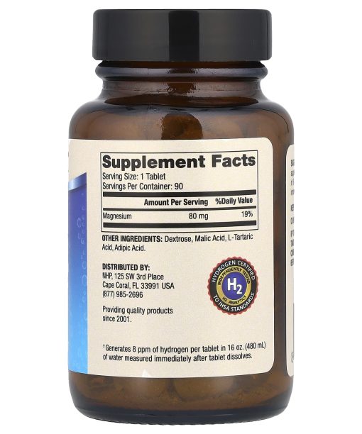 Generates 8 PPM of Hydrogen Per Tablet†Dietary SupplementHydrogen Certified to IHSA Standards – Independently Tested H2 AnalyticsProviding quality products since 2001.† Generates 8 PPM of hydrogen per tablet in 16 oz (480 mL) of water measured  immediately after tablet dissolves.