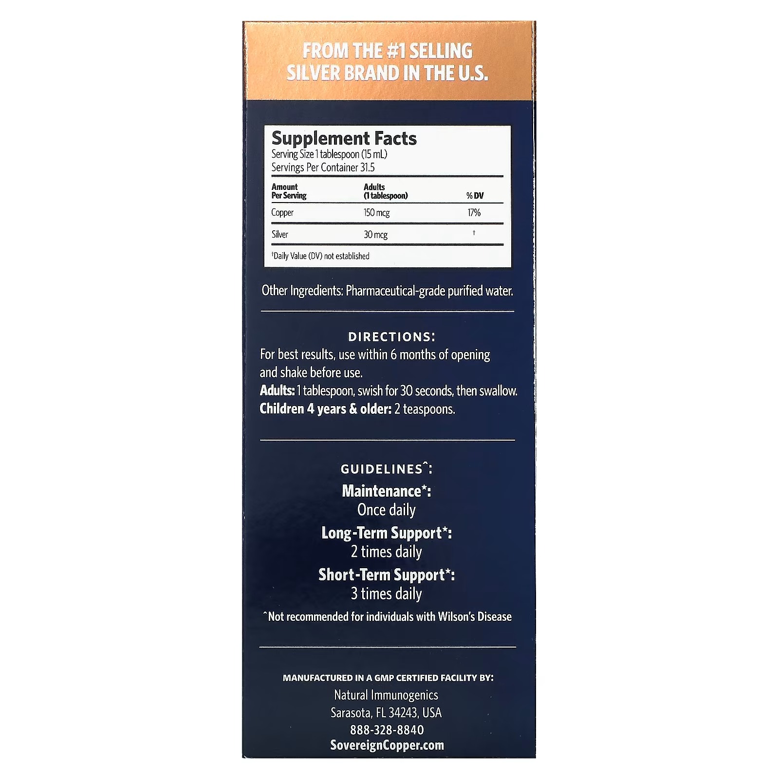 Sovereign Silver, Bio-Active Copper Hydrosol, 10 PPM, 16 fl oz (473 ml)