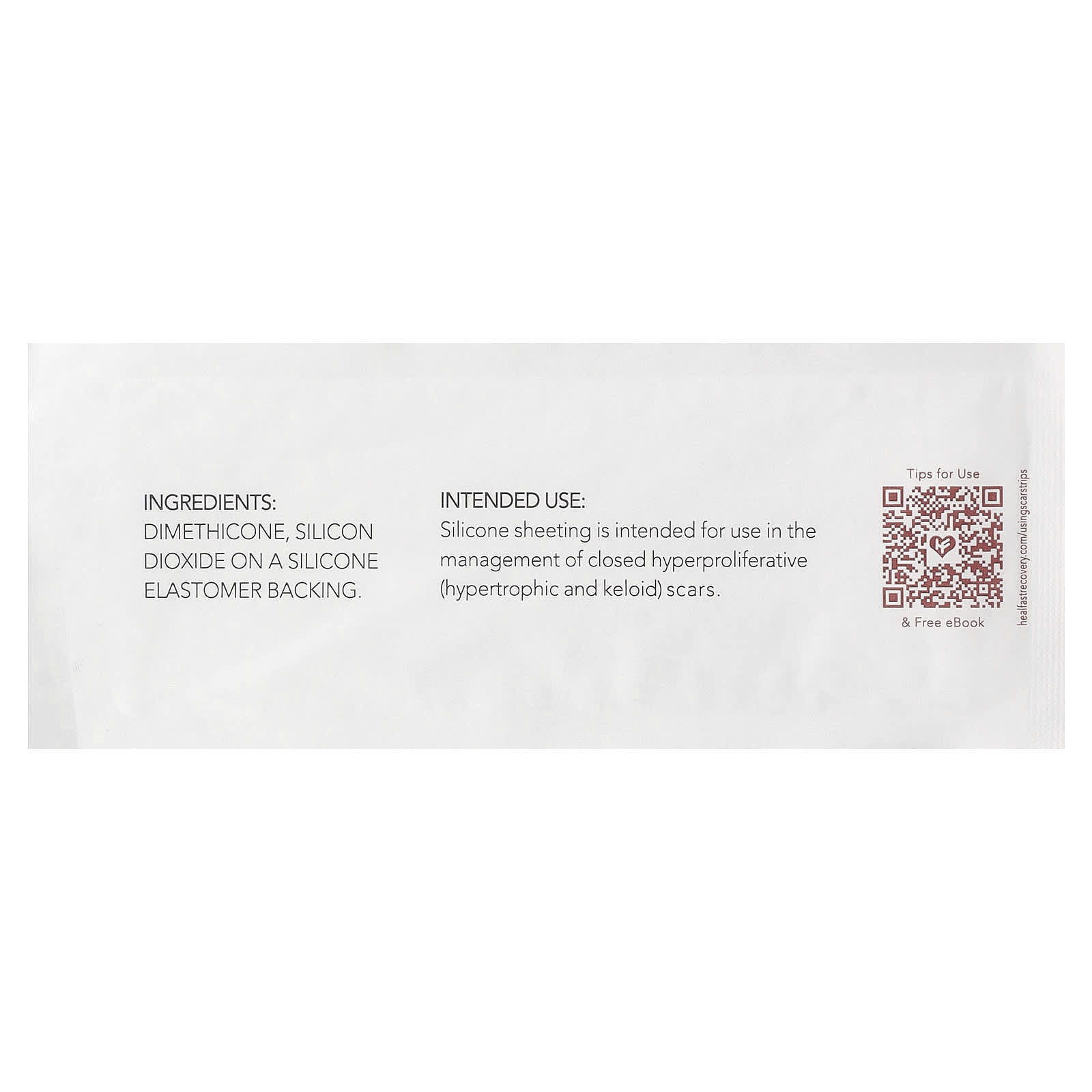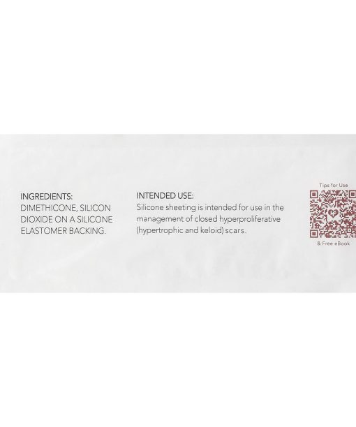 Non-sterile. For external use only. Avoid contact with eyes, mouth, and mucous membranes. Do not ingest. Do not use on open wounds. Avoid usage if known allergy to silicone rubber. Discontinue use if rash or allergic reaction occurs and consult your physician. Choking hazard, keep out of reach of children under age 3.Typical hyperproliferative scars may arise from surgery, injury, and extreme acne situations and are covered & applicable use cases for this product. Minimize prolonged exposure to water (bathing) and sweating (exercise). Minimize stretching of the silicone sheet during application and removal. Avoid storing in areas of extreme heat, light or moisture.