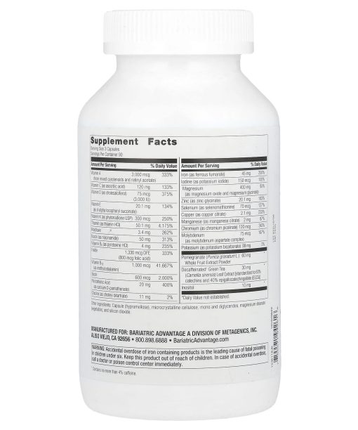 Dietary SupplementThis Product is Non-GMO and Gluten-FreeA specialized multivitamin delivering key nutrients for bariatric patients.Bariatric Advantage Ultra Multi is our highest potency multivitamin with a three-capsule serving. It is ideal for those who are looking for divided doses throughout the day.