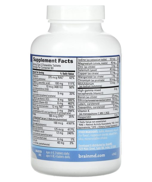 By Daniel Amen, MDBrain Directed NutritionKey Nutrients for Healthy Mind and Active BodiesDietary SupplementCitrus Flavored with Other Natural FlavorsGluten FreeNo Animal ProductsSugar FreeTree Nut FreeSoy FreeMagnafolate®Your child will love these tasty chewables!Supports a healthy brain, eyes, and the entire bodyPowerful antioxidant, methyl supportIngredients optimized for children