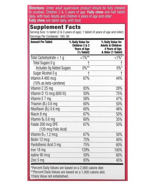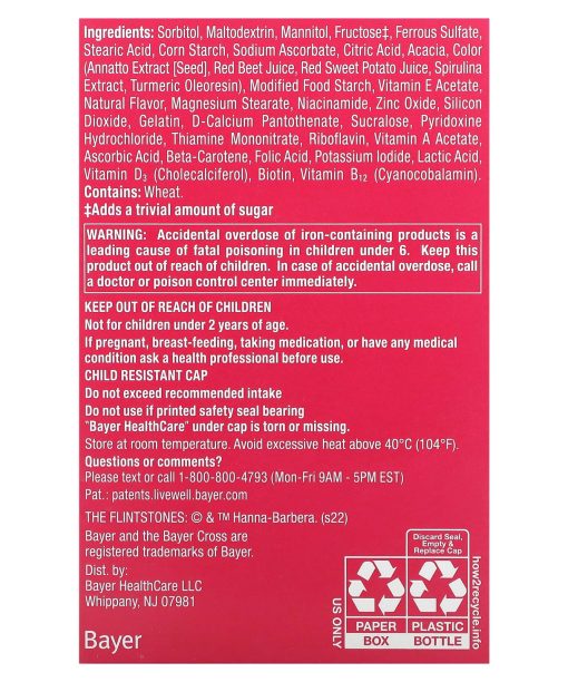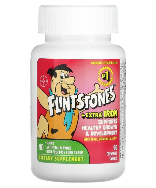 Children´s Vitamin Brand#1 Pediatrician Recommended+ Extra§ IronSupports Healthy Growth & DevelopmentWith Iron, Vitamins A & DNo Sugar, Artificial Flavors, High Fructose Corn SyrupDietary SupplementSupports immune health with Vitamins A, C, D & E.Supports energy with Vitamins B1, B2, B3, B5, B6 & B12 to help convert food to fuel.Supports eye health with Vitamins A, C, & E.8 Fun CharactersFredPebblesBettyThe Great GazooBarneyWilmaBamm BammDino§With 44% DV more Iron than Flintstones Complete Chewable Tablets (18 mg vs. 10 mg).