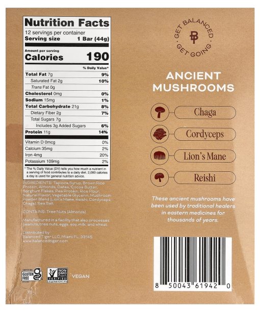 Non GMO Project VerifiedCertified Gluten FreeWith Functional MushroomsMushroom Superfoods11 g Plant Protein190 CaloriesVeganGet Balanced Get Going Ancient Mushrooms These ancient mushrooms have been used by traditional healers in eastern medicines for thousands of years.