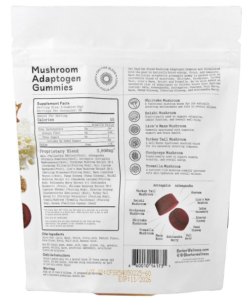 Barker Wellness Co, Daytime Blend, Mushroom Adaptogen Gummies, Strawberry Pineapple, 60 Gummies