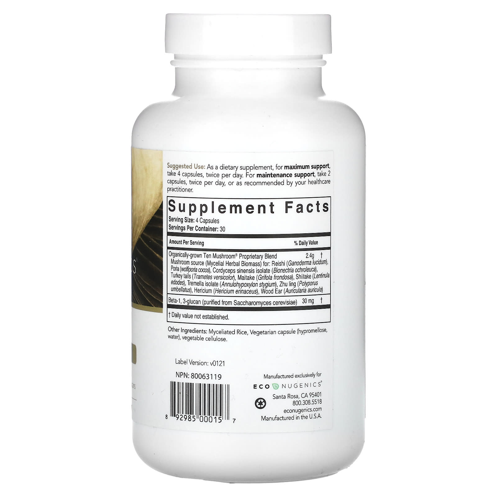 Econugenics, Ten Mushroom, 120 Vegetarian Capsules