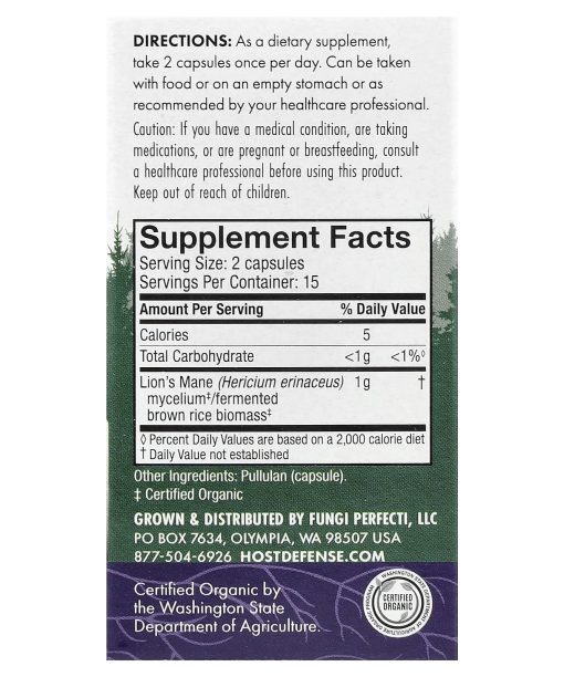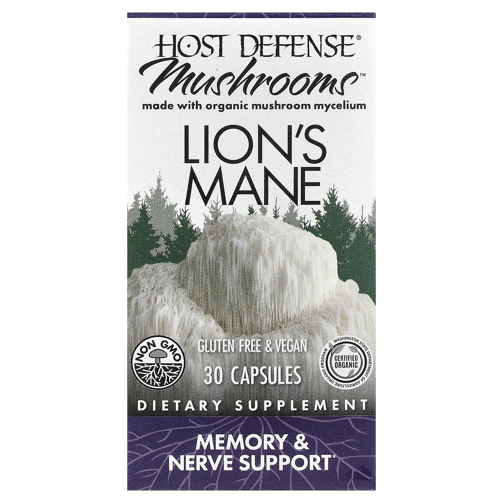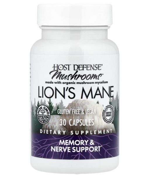 Memory & Nerve SupportMade with Organic Mushroom MyceliumNon GMOGluten Free & VeganDietary SupplementCertified Organic by the Washington State Department of Agriculture#1 Best-Selling Mushroom Brand In The U.S.♦Bee FriendlyPowered by Mushroom MyceliumFungi Perfecti® – makers of Host Defense® Mushrooms™ – was founded by renowned mycologist Paul Stamets to build a bridge between people and fungi. We specialize in mycelium-based supplements for immune support and whole-body wellness. Sustainably grown in the USA, our mushroom mycelium is cultured on organic brown rice. Host Defense® formulations are based on scientifically validated data to ensure quality and safety. Lion’s Mane (Hericium erinaceus) Memory & Nerve SupportKnown as “The Smart Mushroom” Lion’s Mane is ideal for anyone seeking cognition, memory, and mood support. Long-renowned for supporting the nervous system, studies also show that Lion’s Mane can increase Nerve Growth Factor. Promotes mental clarity, focus, and memory.Supports a balanced mood.Promotes nervous system health.Supports a balanced immune response.♦Source: SPINSscan Natural / Natural Products Supermarkets > $2MM / Total US – Natural Channel / Mushrooms Ingredient Report / 52 Wks Ending 12/26/2021
