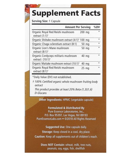Supports Maximum Performance & Healthy Immune ResponseOver 4 Times Stronger 2 Months Supply Dietary Supplement Non GMO VeganGluten FreeOrganic Ingredients 100% Purity & Potency  GuaranteeMushrooms or Mycelia? Mushrooms or Mycelia? For thousands of years, the world’s great holistic systems have used mushrooms to build health. This tradition continues even today, with countless people using them as daily health supplements. However, most “mushroom” products are not mushrooms at all. They are mycelia.Mushrooms are the “fruiting bodies” of fungi that appear above ground. Mycelia are subterranean, root-like structures.The mycelia in supplements grow in plastic bags on beds of rice (or other grains). As they grow, they become part of the grain. Because there is no way to separate the mycelia from the grain, the finished product is up to 50% rice powder. Naturally, mushroom benefits stem from the nutrients they provide, and fruiting mushroom bodies provide more of them than mycelia grown on grain. In fact, fruiting body extracts typically contain:Up to 10 times more ergosterol Up to 16 times more ergothioneine Up to 15 times more mushroom phytochemicals Up to 20 times more immune enhancing Beta-(1,3)(1,6)D-GlucansMyPure™ MushroomsMyPure™ Mushrooms products are made with extracts of non-GMO, 100% Certified Organic mushroom fruiting bodies in a cGMP, FDA registered and fully audited facility. The extraction process breaks down mushroom cell walls to make the nutrients bioavailable. Every batch is laboratory tested for identity, purity and potency, as well as for beta-glucan content. MyPure™ Mushrooms are the world’s finest mushroom supplements.MyPure™ MYcoMune™ 4XFor millennia, Asian Holistic systems have used specific mushrooms as prized health tonics. They support:Healthy Stress ResponseHealthy Immune FunctionBrain, Health, Memory, Concentration & Focus Nerve & Neuron GrowthMushroom benefits, of course, stem from their nutrients. However, nutrients from simple mushroom powders are difficult to absorb because they are locked in cell walls your body can’t digest.MyPure™ MYcoMune™ 4x uses only pure, fruiting body extracts because extraction makes the nutrients bioavailable. Each capsule of MyPure™ MYcoMune™ 4x provides extracts of premium, certified organic fruiting bodies of Royal Red Reishi, Cordyceps, Lion’s Mane, Maitake, Shiitake and Chaga. These extracts make MyPure™ MYcoMune™  4x at least 4 times stronger than MyPure™  MYcoMune™ original, and up to 16 times stronger than products from mycelia grown on grain. While some products contain more mushroom species, MyPure™ MYcoMune™ 4x offers higher levels of the most important, delivering at least 20% beta-glucans, and the vitamins, minerals and unique phytochemicals that make mushrooms so special. Every batch of MyPure™  MYcoMune™  4x is laboratory tested for cleanliness, purity and potency. It contains no grain or other fillers, and no mycelia. It is the world’s most potent mushroom combo. MyPure™ MYcoMune 4x: More Nutrition. Maximum Absorption. Simply Better.