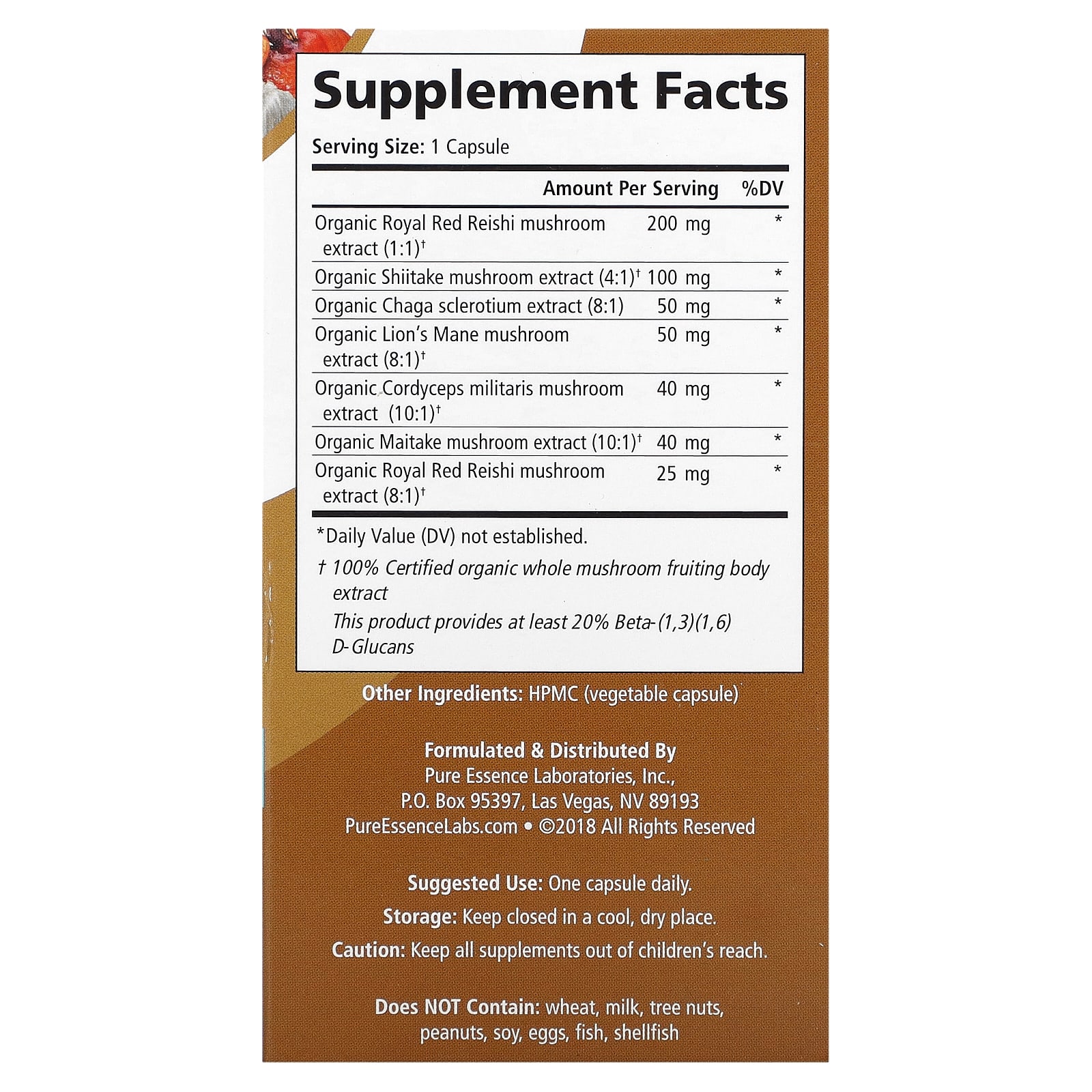 HPMC (vegetable capsule)Does not contain: wheat, milk, tree nuts, peanuts, soy, eggs, fish, shellfish