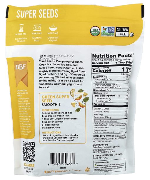 BetterBody Foods, Organic Super Seeds, 16 oz (454 g)