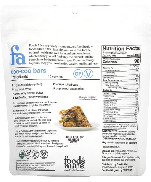 Foods Alive, Organic Trail Mix, Coo, Coo, Cashew, 8 oz (227 g)