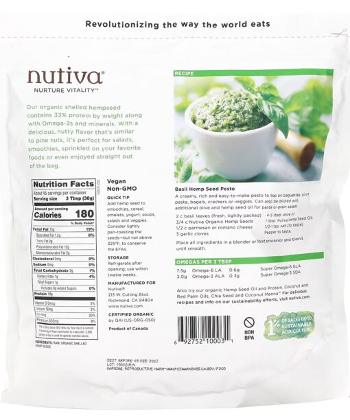 Nutiva, Organic Superfood, Raw Shelled Hempseed, 3 lbs (1.36 kg)