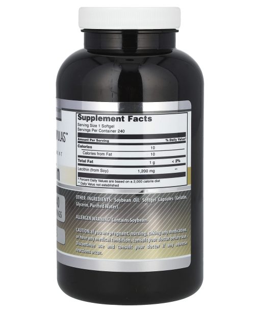 Amazing Formulas™Dietary Supplement1,200 mg Per ServingVitamin Angels® Proud SupporterAn FDA Registered FacilityWe believe that Amazing Nutrition® is the key for Healthy Living. We are passionate about bringing you the finest selection of products which can perfectly complement a healthy diet and active lifestyle.A single-serving softgel of Amazing Formulas Lecithin Dietary Supplement provides 1200 mg of lecithin, making it easy to incorporate this healthy fat into your everyday diet.Amazing Formulas lecithin is derived from soy. As a result, your body may be able to readily break down the supplement and absorb the nutrient.  Lecithin has been shown to provide a number of potential benefits and plays a role in nervous system, brain, cardiovascular and digestive health. What is Lecithin?Lecithin is a fat that is essential in the cells of the body. It can be found in many foods, including soybeans and egg yolks. Every cell in the body needs lecithin to function properly. People on low fat and calorie-restrictive diets often do not consume enough lecithin.
