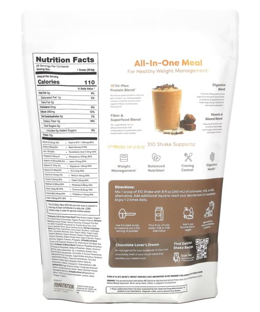 Mix 1 scoop of 310 Shake with 8 fl oz (240 mL) of cold water, milk, or milk alternative. Add additional liquid to reach your desired level of consistency. Enjoy 1-2 times daily.