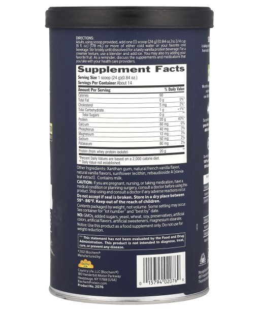 Adults, using scoop provided, add one (1) scoop (24 g) (0.84 oz) to 3/4 cup (6 fl. oz.) (178 mL) or more of either cold water or your favorite cold beverage. Stir briskly until dissolved for a tasty vanilla protein beverage. For a creamier texture, use a blender and add ice. You may also try adding your favorite fruit. As a reminder, discuss the supplements and medications that you take with your health care providers.