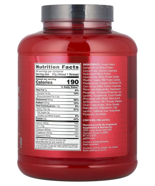22 g ProteinUse Anytime, Day or NightArtificially FlavoredProtein Powder Drink Mix48 Servings10 g Essential Amino AcidsNaturally Occurring EAASMuscle Recovery190 CaloriesSupports Muscle Building*Ultra-Premium Protein. Ultra-Premium Taste™.Syntha-6® Product Highlights:Multi-Functional Ultra-Premium Protein MatrixNaturally Occurring Branched Chain and Other Essential and Non-Essential Amino AcidsMedium Chain TriglyceridesDesigned For: Any individual who wants an ultra-premium protein powder to help them reach their nutritional goals.Lecithin is a phospholipid complex derived from soybean oil, which is used to promote mixability.*When taken over time with regular resistance exercise.