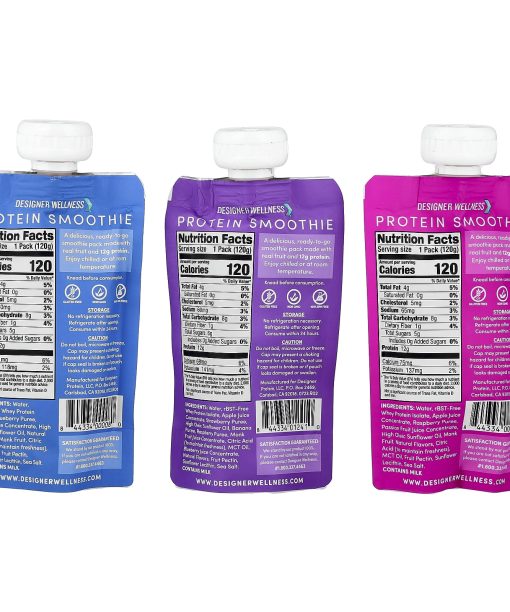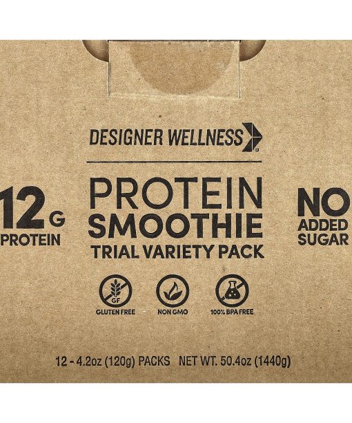 Designer Wellness, Protein Smoothie, Trial Variety Pack, 12 Packs, 4.2 oz (120 g) Each