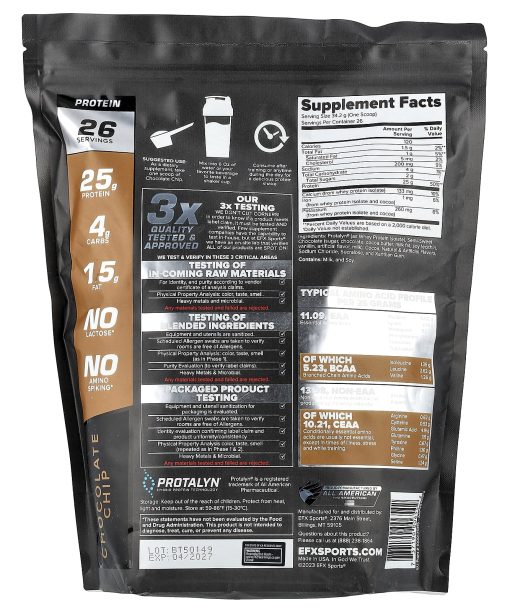 EFX Sports, Protalyn® Whey Protein Isolate, Chocolate Chip, 2 lb (907 g)