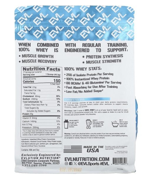 Gluten Free/Low FatProtein Powder Drink MixNatural and Artificial FlavorsWhen combined with regular training, 100% Whey is engineered to support:Muscle GrowthProtein SynthesisMuscle Recovery Muscle Strength100% Isolate Stats:25 g of Isolate Protein Per Serving100% Instantized Whey Protein Isolate6 g of BCAAs¹  & 4 g of Glutamine¹ Per ServingFast Absorbing for Use After TrainingLow Fat/No Added Sugar²¹Naturally occurring²Not a low calorie food