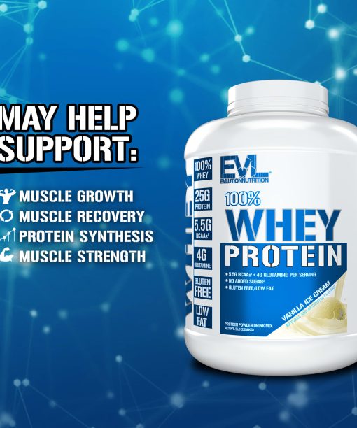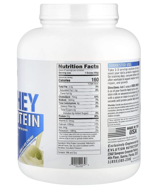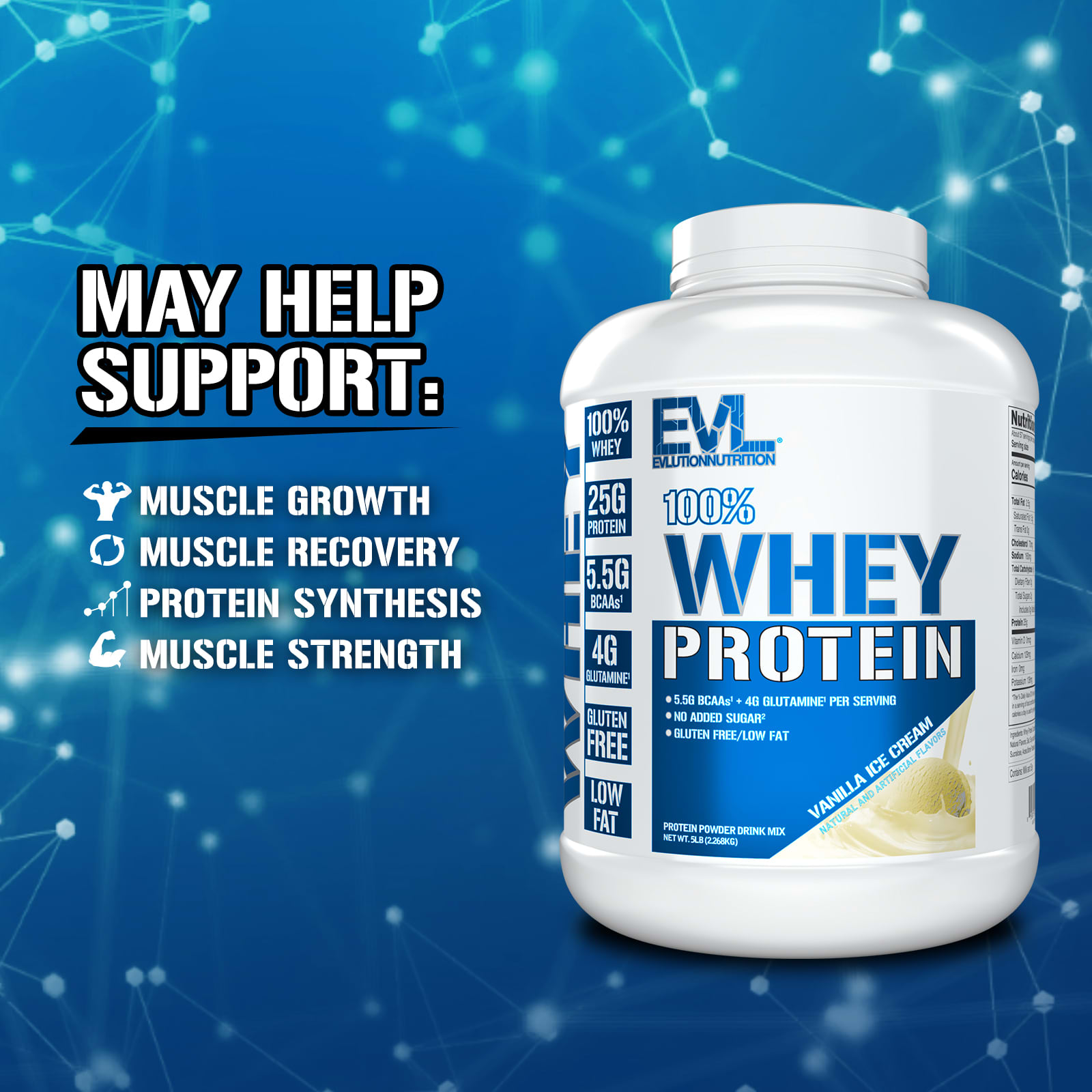 EVLution Nutrition, 100% Whey Protein, Vanilla Ice Cream, 5 lb (2,268 kg)