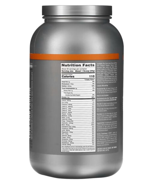 25 grams of delicious 100% pure, rBST free†, whey protein isolate that’s low on the carbs. 100% whey protein isolate means exceptional purity and quality: excess fat, cholesterol, sugars, carbs, lactose and other fillers are removed to give you everything you need and nothing you don’t. And each serving delivers 5.5 grams of naturally occurring BCAAS, 4 grams of naturally occurring glutamine and an added vitamin and mineral blend to help you meet your micronutrient needs.