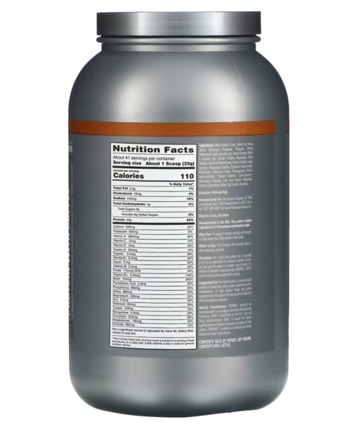 25 grams of 100% pure whey protein isolate and a kick of real coffee to start your day. 100% whey protein isolate means exceptional purity and quality: excess fat, cholesterol, sugars, carbs, lactose and other fillers are removed. And still it comes with 4 grams of naturally occurring glutamine, and 5.5 grams of naturally occurring BCAAs.