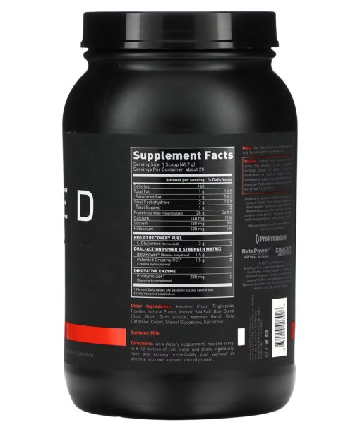 As a dietary supplement, mix one scoop in 8-12 ounces of cold water and shake vigorously. Take one serving immediately post workout or anytime you need a power shot of protein.