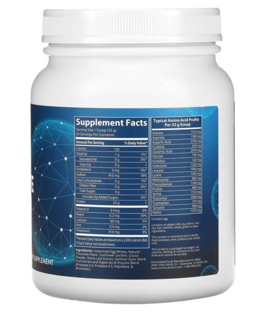 Instantized egg whites, natural chocolate flavor, sunflower lecithin, cocoa powder, stevia leaf extract, xanthan gum, monk fruit extract and digest-ALL® enzyme blend (protease 6.0, protease 4.5, peptidase & bromelain).