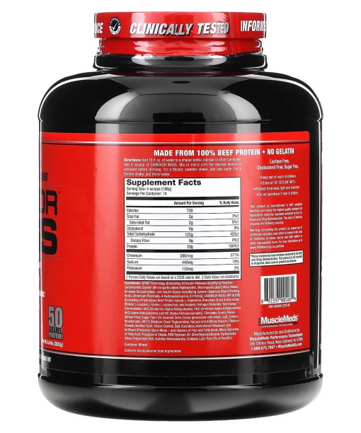 Clinically Tested#Performance TechnologiesHydrolyzed Beef Protein IsolateHigh Impact Reactive CarbsHelps Insulin Amplification and SignalingBranched Chain Amino AcidsInformed Choice – We Test You TrustDietary SupplementAdvanced Flavor TechnologyNaturally and Artificially Flavored50 Grams Protein!Lactose FreeCholesterol FreeSugar FreeOnly 2 Grams FatMade From 100% Beef ProteinNo GelatinThe world’s first highly anabolic all beef mass builder!Welcome to a New Era in Mass Building Supplementation with CARNIVOR MASS – The Clinically Tested Beef Protein Mass Gainer!#The days of loading your body with empty fat storing calories are over! Calories don’t stimulate muscle growth – anabolism does! High-speed macronutrient delivery with near-perfect insulin optimization sets CARNIVOR MASS apart from all others. Research shows that fast proteins combined with elevated insulin equals explosive muscle anabolism (growth) when combined with resistance training. CARNIVOR MASS makes this possible with MuscleMeds world famous CARNIVOR Beef Protein Isolate (BPI) acting in combination with iSpike, a dual insulin release/insulin signal amplifying technology not found in any other supplement.+Beef Protein Isolate – Backed By Research To Build Muscle! Beef has proven itself as a favorite anabolic protein source for many athletes and champion bodybuilders. Clinical research shows that hard training male athletes supplementing with CARNIVOR BPI gained an average of 7.7 lbs. of muscle mass in just 8 weeks (a 6.4% average increase), while the placebo group only increased lean muscle body mass by 0.7 lbs.# MuscleMeds hydrolyzed CARNIVOR Beef Protein Isolate (BPI) provides the power of beef at the speed of whey, delivering rapid absorption of high concentrations of amino acids without the lactose, allergies, fat, cholesterol and other problems associated with dairy products. This pure Beef Protein Isolate is also 350% more concentrated in amino acids than steak and more concentrated than whey. Plus BCAAs for even greater anabolic power!iSpike is an exclusive MuscleMeds technology designed to harness the full anabolic impact of insulin.+ Using fast-acting. reactive-enhanced micronparticulated carbs and insulin potentiators Chromium and D-pinitol (a cyclitol), iSpike causes a rapid elevation in insulin while simultaneously amplifying insulin signaling at the muscle receptors to potentiate maximum muscle growth, glycogen replenishment and tissue regeneration.iSpike works so fast and is so powerful, it helps stimulate anabolism within 30 minutes of your first delicious serving. This is the desired anabolic effect you want from your mass gainer and it can only be achieved with CARNIVOR MASS … the premium mass builder from MuscleMeds!Informed-Choice Certified Trusted to be clean, CARNIVOR MASS is Informed-Choice Certified, tested for over 200 banned substances on the WADA list, and produced in a GMP Compliant Facility. You can be confident you are getting the highest quality product available.# J Strength Cond Res. 2018 Aug;32(8):2233-2242. Muscle mass data based on male subjects. Weight and strength gains compared to baseline. Results based on consuming 46 grams of beef protein daily. Female subjects also experienced an increase in lean body mass. +Within the normal range.